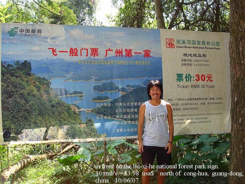 front of the liu-xi-he river national forest park sign. cost 30 rmb's