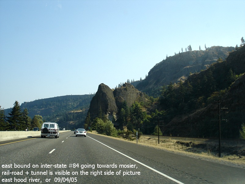 on inter-state #84 going towards mosier. rail-road + tunnel is
