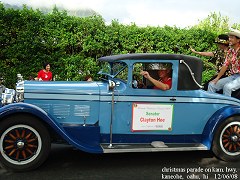 blue vintage car cruisin' through the kaneohe christmas parade |