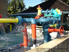 pipe sculptures with a lotta' water comeing on out. art-work as