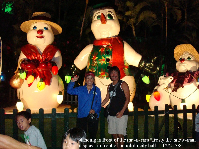 with ellie in front of a "mele kaliki-maka" made outta' BIG